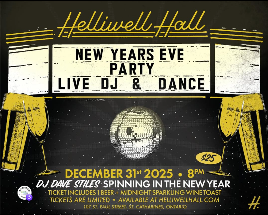 Grab your friends and ring in the new year at The Hall! Join us & DJ Dave Stiles at 8pm as we groove our way into 2026.
